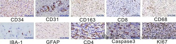 染色结果判读:苏木素染细胞核为蓝色,DAB 显出的阳性表达为棕黄色。