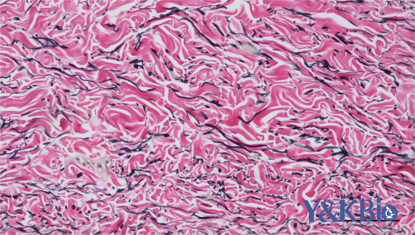 染色结果:蛋白聚糖蓝色,肌纤维浅红色,纤维素深红色,弹力纤维和细胞核紫黑色,胶原蛋白和网状纤维黄色