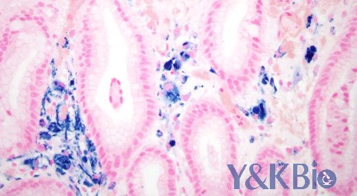 陕西依科生物技术服务有限公司一、普鲁士蓝详情介绍:含铁血黄素(Hemosiderin)是一种血红蛋白源性色素,为金黄色或棕黄色颗粒,因其含铁、金黄色,故称为含铁血黄素。当红细胞被巨噬细胞吞噬后,在溶酶体酶的作用下,血红蛋白被分解为不含铁的橙色血质和含铁的含铁血黄素。Perls 普鲁士蓝反应(Prussian blue reaction)又称为含铁血黄素染色,即经过亚铁和稀酸处理后可以产生蓝色,常见于吞噬细胞内会间质内,主要显示三价铁盐。Perls 普鲁士蓝是非常经典的组织化学反应,是显示组织内三价铁的一种敏感、传统优良的方法,其染色原理为:亚铁qing hua jia溶液使三价铁离子从蛋白质中被稀盐酸分离出来,三价铁与亚铁反应,生成一种不溶解的蓝色化合物即三价铁的亚铁物普鲁士蓝,所以该反应被称为黑龙江普鲁士蓝染色反应。三价铁的是一种很稳定的化合物,在反应后可用红色染色剂进行复染,如核固红、伊红、中性红等。